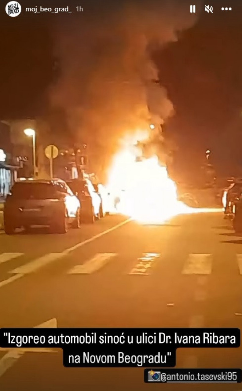 Sinoć se zapalio automobil u Ulici dr Ivana Ribara na Novom Beogradu. Nasred puta je eksplodirao i buknula je ogromna vatra.