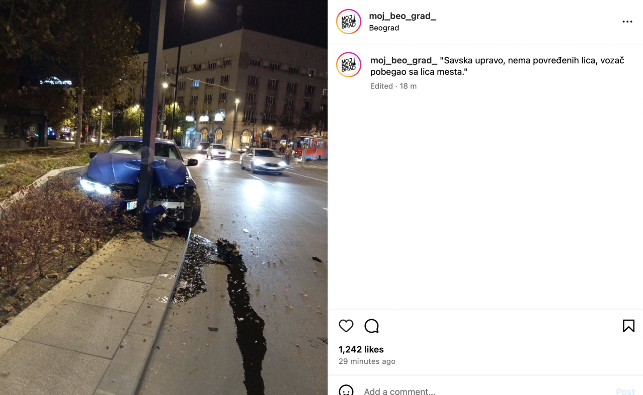 Kako pišu na Instagram nalogu "Moj Beograd", vozač je pobegao sa lica mesta.