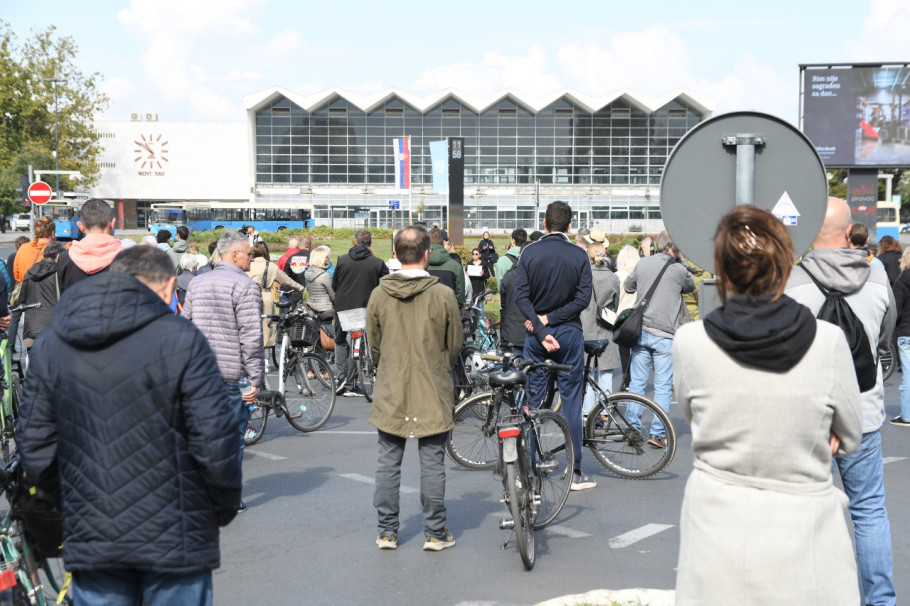 Na raskrsnici Bulevara oslobođenja i Bulevara Jaše Tomića, kod Železničke stanice, okupila se grupa građana na poziv tzv. zborova gde su održali 16 minuta ćutanja.