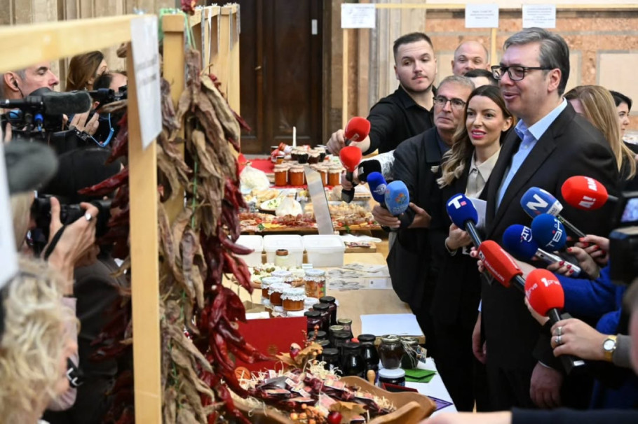 - Naš proizvod sa naše njive, sami proizvodimo, sami pakujemo - rekao je Vučić i dodao da zna sva sela po Srbiji kad mu je jedna preduzetnica rekla da je iz Lazareva.