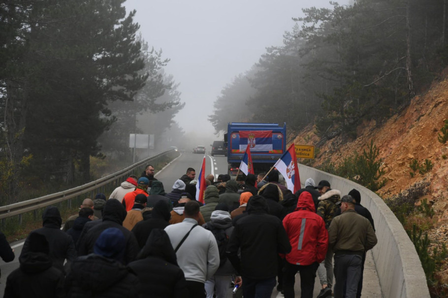 Grupa od 60 Srba iz AP Kosova i Metohije krenula je danas peške ka Novom Sadu da podrži predsednika Srbije Aleksandra Vučića i veliki narodni skup protiv blokada.