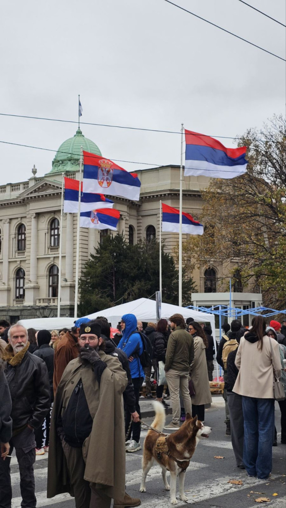 Ispred Skupštine Srbije trenutno je mirno nakon sinoćnjih tenzija tokom skupa podrške Dijani Hrki, majci dečaka koji je poginuo u padu nadstrešnice na Železničkoj stanici u Novom Sadu, a koja štrajkuje glađu u šatoru na uglu Takovske i Bulevara kralja Aleksandra.