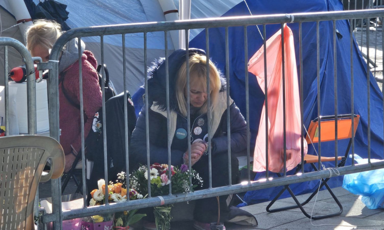 Na uglu Takovske ulice i Bulevara kralja Aleksandra nalazi se šator u kojem je Dijana Hrka, čiji je sin stradao u padu nadstrešnice na Železničkoj stanici u Novom Sadu, a koja je u nedelju započela štrajk glađu. Sa Hrkom je i mala grupa građana koji joj pružaju podršku, a na platou ispred Skupštine Srbije raspoređeni su pripadnici policije.