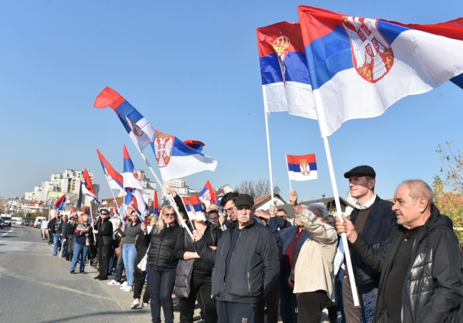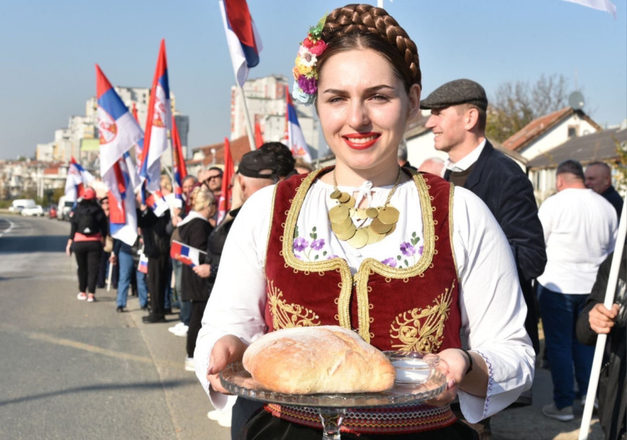 U koloni su istaknute srpske zastave i transparent "Srbi sa KiM za Srbiju protiv blokada", a kako kažu cilj im je da mirnom šetnjom pruže podršku državi Srbiji i predsedniku Aleksandru Vučiću.
