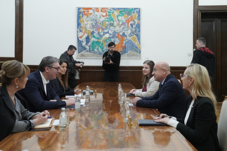 - Srdačan sastanak sa Marcelom Peškom, kojem sam čestitao preuzimanje dužnosti šefa Misije OEBS-a u Srbiji i izrazio posvećenost nastavku dobre saradnje koju naša zemlja ima sa ovom organizacijom. Istakao sam uverenje da će bogato diplomatsko iskustvo uvaženog sagovornika doprineti unapređenju procesa na kojima ćemo zajednički da radimo - objavio je Vučić na Instagramu.