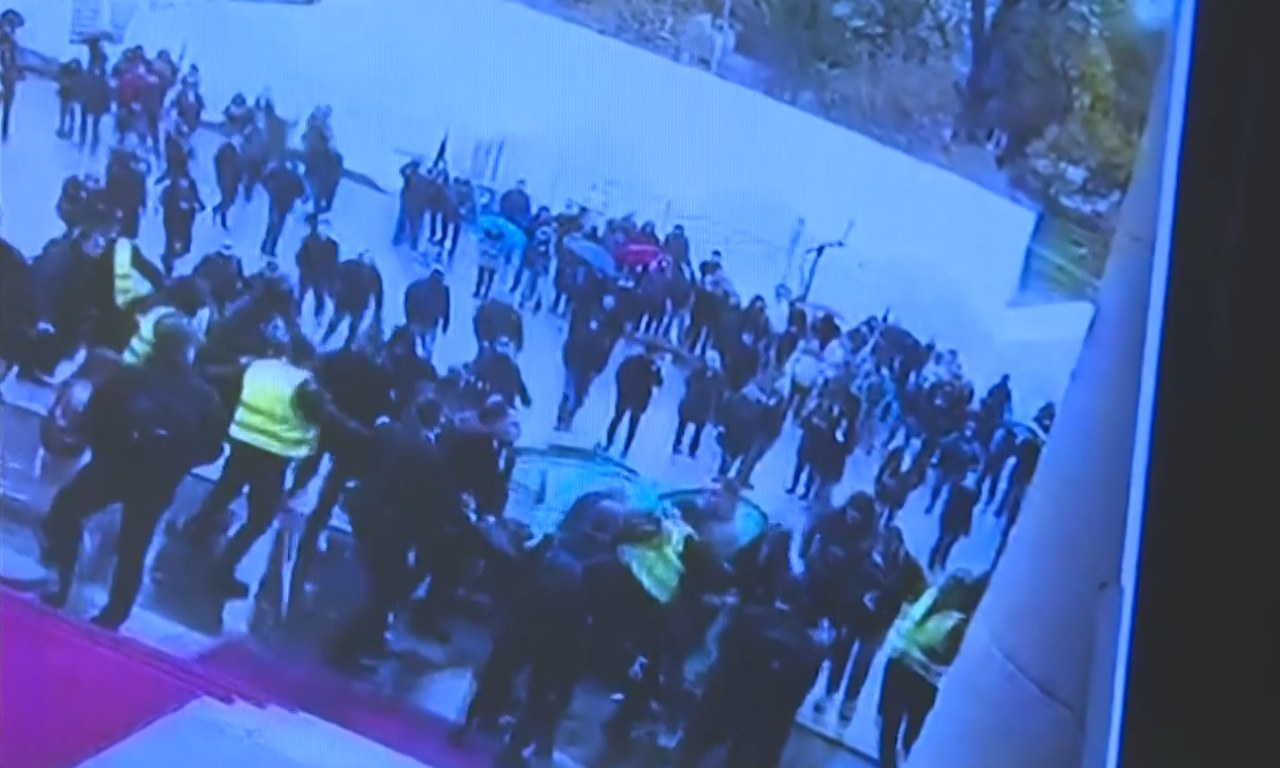 Na prvom snimku koji je prikazan vide se poslanici opozicije koji napadaju šator u "Ćacilendu", i potom se sukobljavaju sa grupom ljudi.