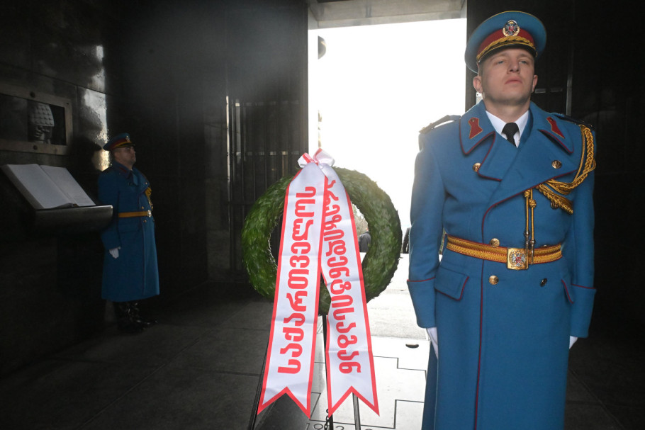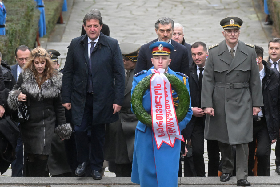 Predsednik Gruzije Mihail Kavelašvili, u pratnji ministra odbrane Bratislava Gašića i načelnika Generalštaba Vojske Srbije generala Milana Mojsilovića, položio je danas venac na Spomenik neznanom junaku na Avali, u okviru zvanične posete našoj zemlji.