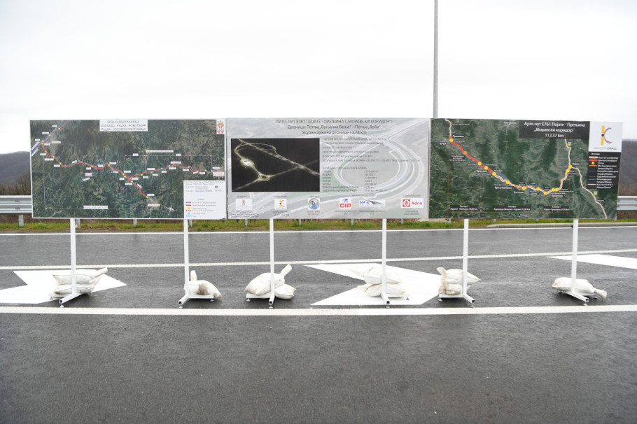 Predsednik Srbije Aleksandar Vučić izjavio je danas, na otvaranju deonice auto-puta od petlje "Vrnjačka Banja" do petlje "Vrba" u dužini oko 14 kilometara, da će još 29 kilometara od Čačka do Kraljeva biti otvoreno u maju, a da će ceo Moravski koridor biti gotov do septembra 2026. godine. "