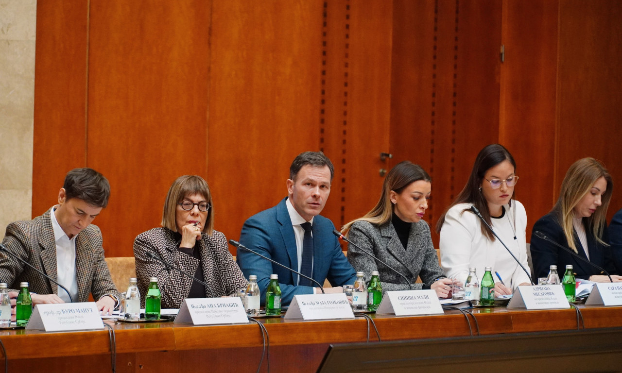Tematska sednica Vlade Srbije, kojoj prisustvuje i predsednik Aleksandar Vučić na poziv premijera prof. dr Đure Macuta, održava se u Palati Srbija.