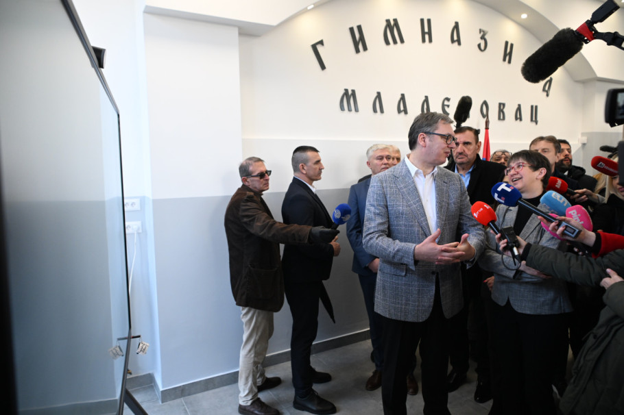 Predsednik Srbije Aleksandar Vučić prisustvuje ceremoniji otvaranja rekonstruisane "Gimnazije Mladenovac".
