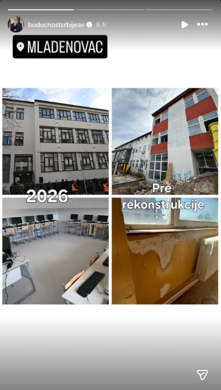 Predsednik Srbije Aleksandar Vučić prisustvovao je danas svečanoj ceremoniji otvaranja potpuno rekonstruisane „Gimnazije Mladenovac“. Obnova ove obrazovne ustanove, osnovane još 1950. godine, predstavlja jedan od najvažnijih infrastrukturnih projekata za ovaj deo Beograda.