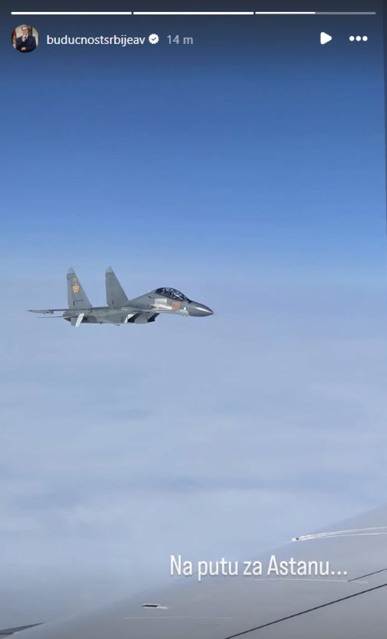 Avion predsednika Srbije Aleksandra Vučića u vazdušnom prostoru Kazahstana sačekali su avioni Suhoj 3.