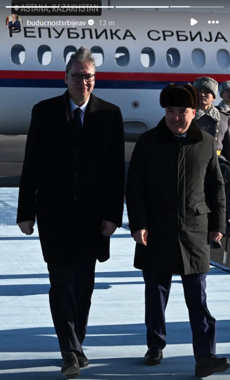 - Zahvalan premijeru Olžasu Benktenovu na srdačnom dočeku i srećan što ću se sastati sa velikim ličnim i prijateljem Srbije, predsednikom Kasimom-Žomartom Tokajevim sa kojim ću razgovarati o svim bitnim pitanjima od značaja i interesa za Srbiju i Kazahstan - naveo je Vučić na Instagramu.