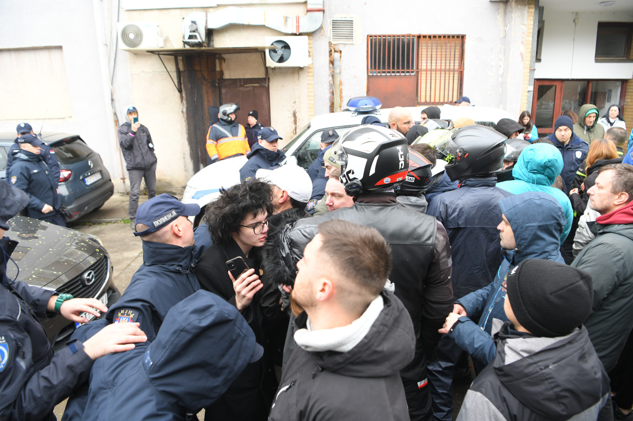 Jedan od pristalica opozicije pokušao je da probije kordon, ali nije uspeo. Oni su doneli ozvučenje, prave buku i uzvikuju "pumpaj", a stigla je i grupa bajkera.
