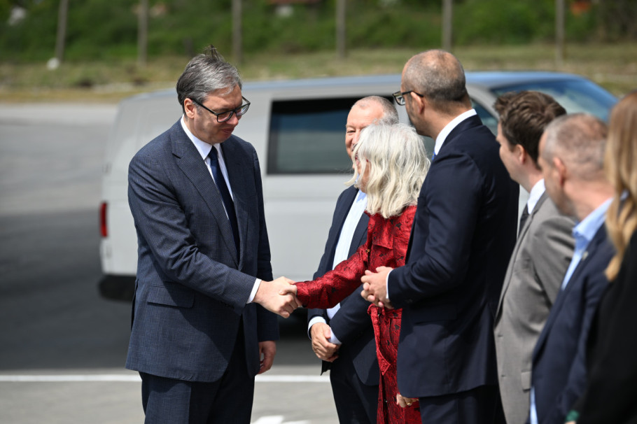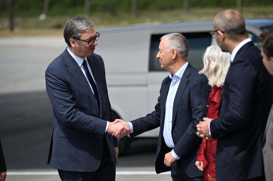 Predsednika Vučića dočekali su u krugu fabrike vlasnik Srpske fabrike stakla Igor Lah i generalni direktor Vaider Grupe Kristijan Froba, nakon čega su započeli sastanak.