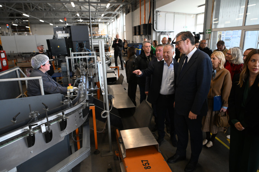 "Ja govorim o bocama, svakako više od 100 miliona boca. Slušajte, vi imate ogroman posao da 10 odsto toga pokrijete, a da ne kažem da se nadamo da možete da pokrijete i 50 odsto, ali do toga moramo svi zajedno da dođemo. I onda se nadam da ću videti i mnogo novih mladih ljudi, mnogo novih mladih radnika koji će ovde moći da rade", istakao je Vučić.