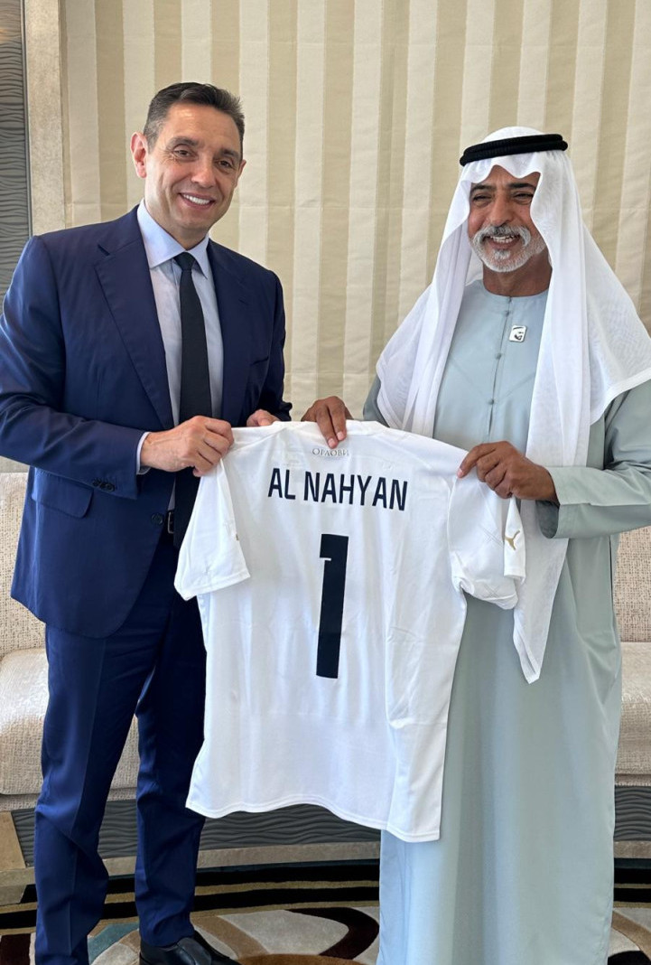 Šeik Nahjan bin Mubarak Al Nahjan prihvatio je ljubazni poziv da poseti našu državu, istakavši da Srbija organizacijom izložbe "Expo 2027 Beograd" postaje deo velike globalne inicijative za održivi tehnološki i ekonomski uspon. Šeik Nahjan bin Mubarak Al Nahjan razgovarao je sa potpredsednikom Vlade Srbije Aleksandrom Vulinom u svojoj rezidenciji, izrazivši veliko poštovanje prema Republici Srbiji.