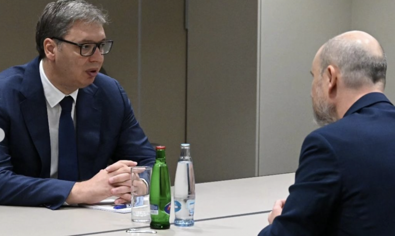 Predsednik Srbije Aleksandar Vučić sastao se danas sa visokom predstavnikom međunarodne zajednice u BIH, Kristijanom Šmitom u Pragu, gde se održava forum GLOBSEC2024.
