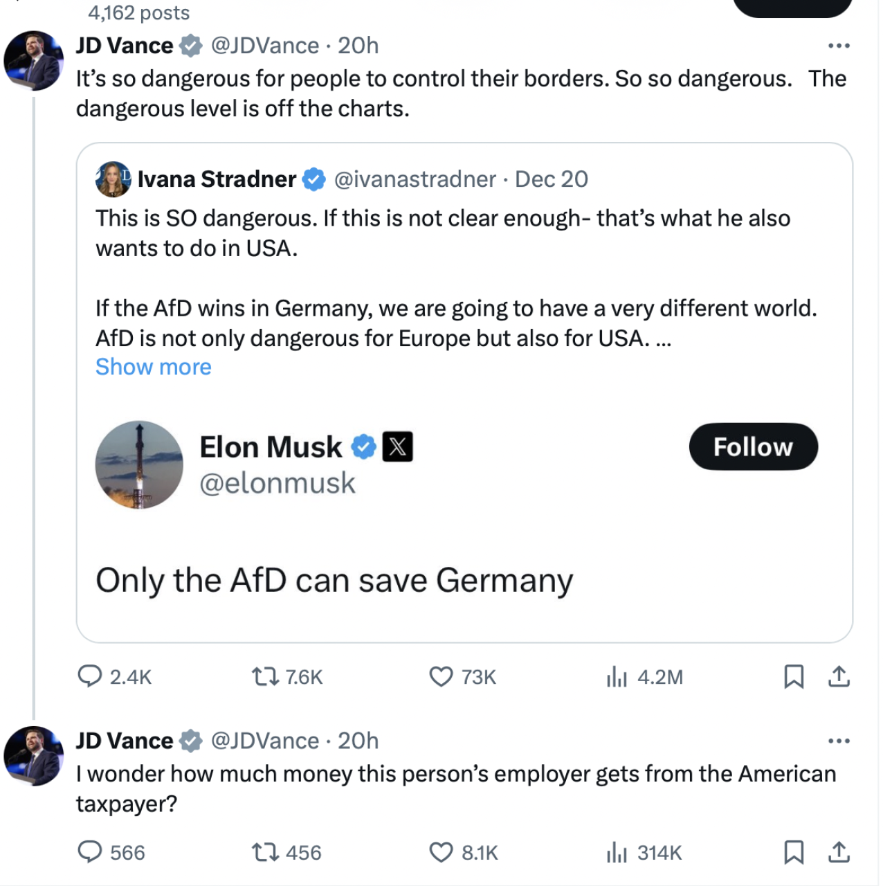 Jednom objavom na društvenoj mreži X novi potpredsednik Džej Di Vens je sasuo istinu u lice Ivani Štradner, koja već godinama od srpske opozicije pravi žrtve napada predsednika Vučića i Srbiju.
