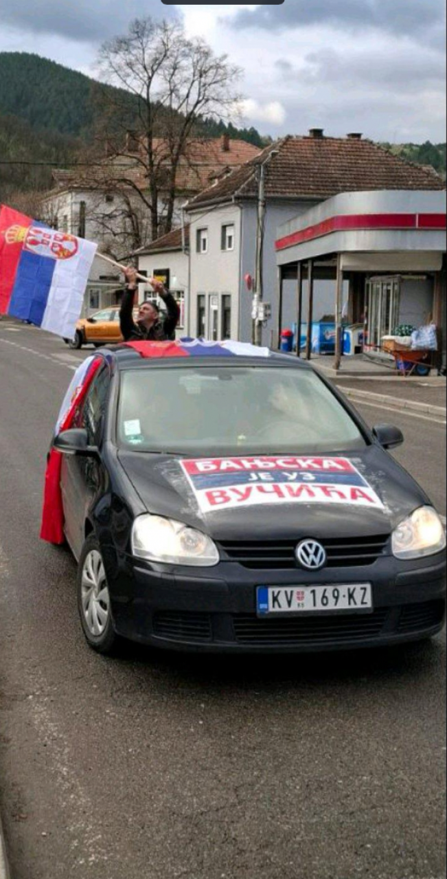 Na haubi automobila istakao je natpis velikim slovima: "Banjska je uz Vučića"!