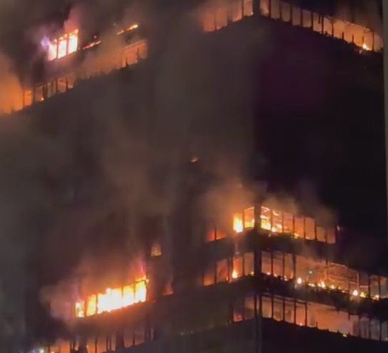 "Prvo je planuo gornji sprat. Onda je počela sredina pa donji dio. Opasnost je velika i zbog ploča koje padaju. Vatra vrlo nelogično gori", kazali su za Jutarnji.