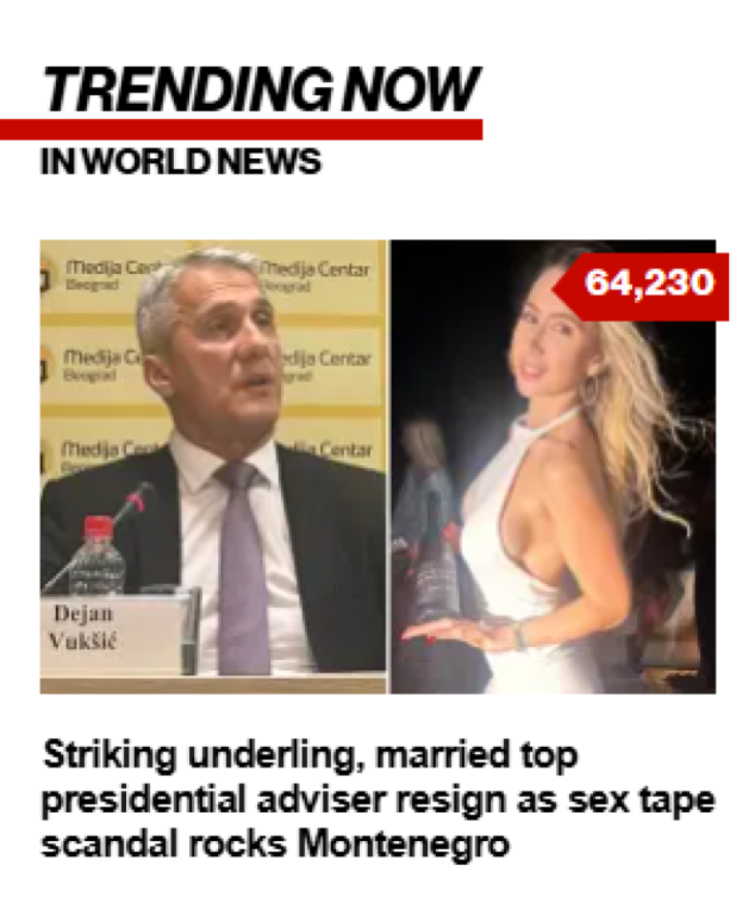 Seksualni skandal u Crnoj Gori, u kojem su glavni akteri bivša državna sekretarka u Ministarstvu ljudskih i manjinskih prava Mirjana Pajković i bivši direktor ANB-a Dejan Vukšić, privukao je pažnju svetskih medija.