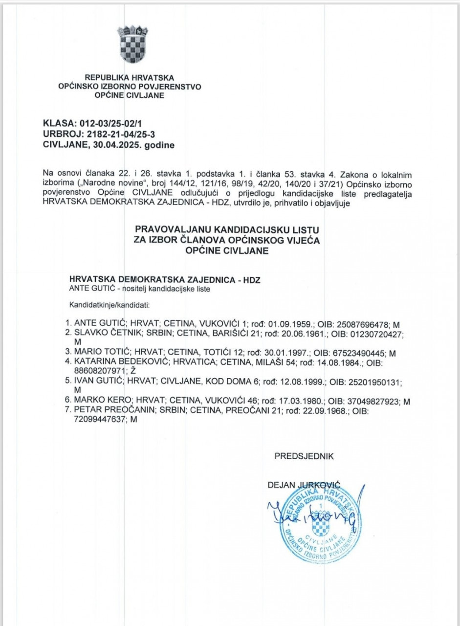 Slavko Četnik, Srbin iz Cetine, drugi je na listi kandidata stranke hrvatske tvrdokorne desnice, u opštini Civljane nadomak Knina u kojoj je na popisu svega 460 ljudi.