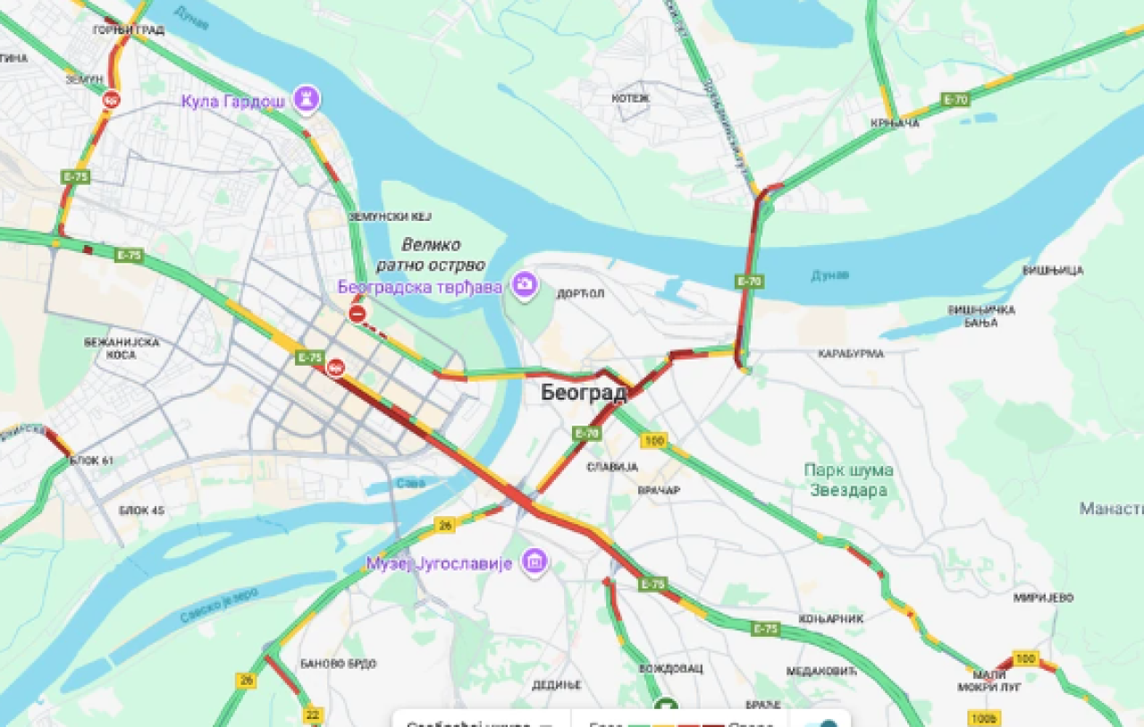 Dodatne kolone beleže se i na Pančevačkom mostu i njegovim prilazima, kao i u zoni Autokomande, gde se vozila kreću usporeno.