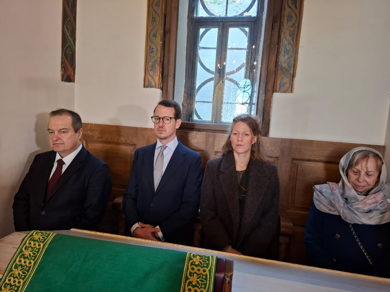 Odmah do ministra Dačića stajali su srpska princeza Danica i princ Filip Karađorđević i pomno pratili liturgiju patrijarha uz molitvu.
