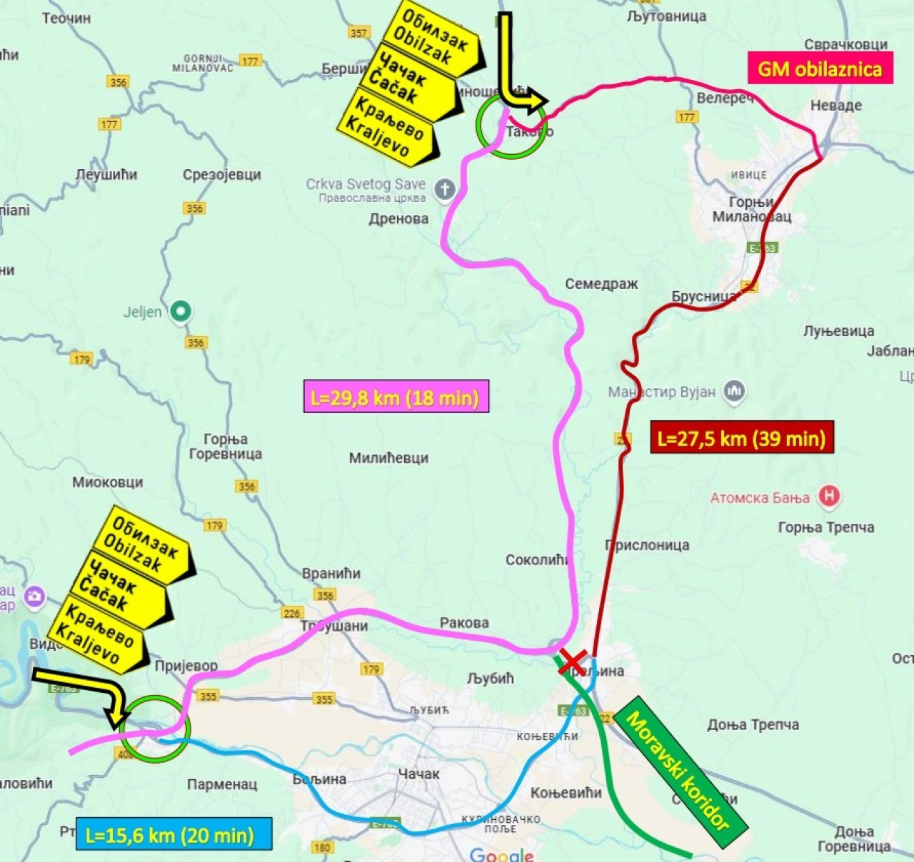 Tokom zatvaranja denivelisane raskrsnice Preljina saobraćaj će se, ka odredištima Čačak i Kraljevo, odvijati na sledeći način: