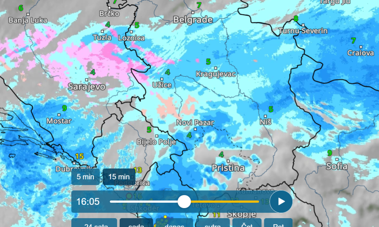 Padavine: Obilnije padavine se očekuju na području jugozapada i juga Srbije.