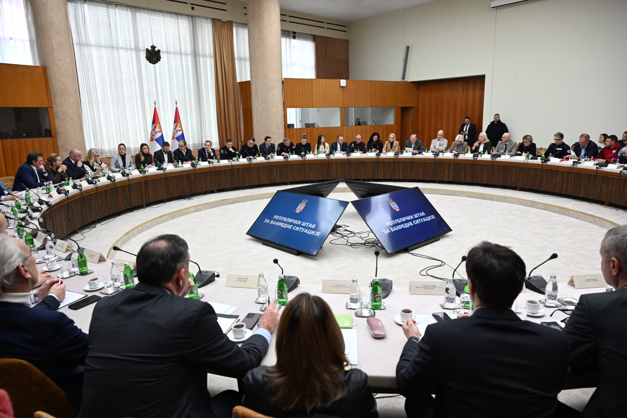 Sednici Štaba za vanredne situacije predsedavao je potpredsednik Vlade Srbije i komandant štaba, Ivica Dačić. Pored premijera Đura Macuta, prisustvovali su ministri Adrijana Mesarović, Aleksandra Sofronijević, Snežana Paunović, Bratislav Gašić, Zlatibor Lončar, Marko Đurić, Sara Pavkov i Nenad Vujić.
