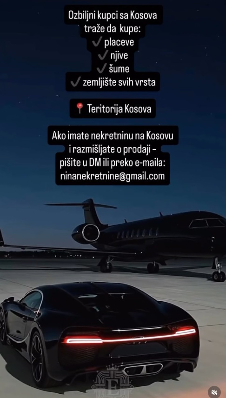 Utisak je da je ova objava na Instagramu najblaže rečeno šokantna i antisrpska jer se ovim oglasom beogradske agencije, sasvim je očigledno, ciljaju Srbi koji bi trebalo da se zauvek sele sa Kosova. Iako nije navedeno ko su potencijalni kupci pomenutih placeva, njiva, šuma i zemljišta svih vrsta, jasno je ko bi to mogao biti.