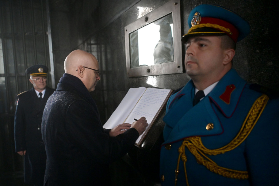 Posle ceremonije polaganja venca, uz počasni stroj Garde i intoniranje državne himne, savetnik predsednika Vučević upisao se u spomen-knjigu, saopštilo je Ministarstvo odbrane.