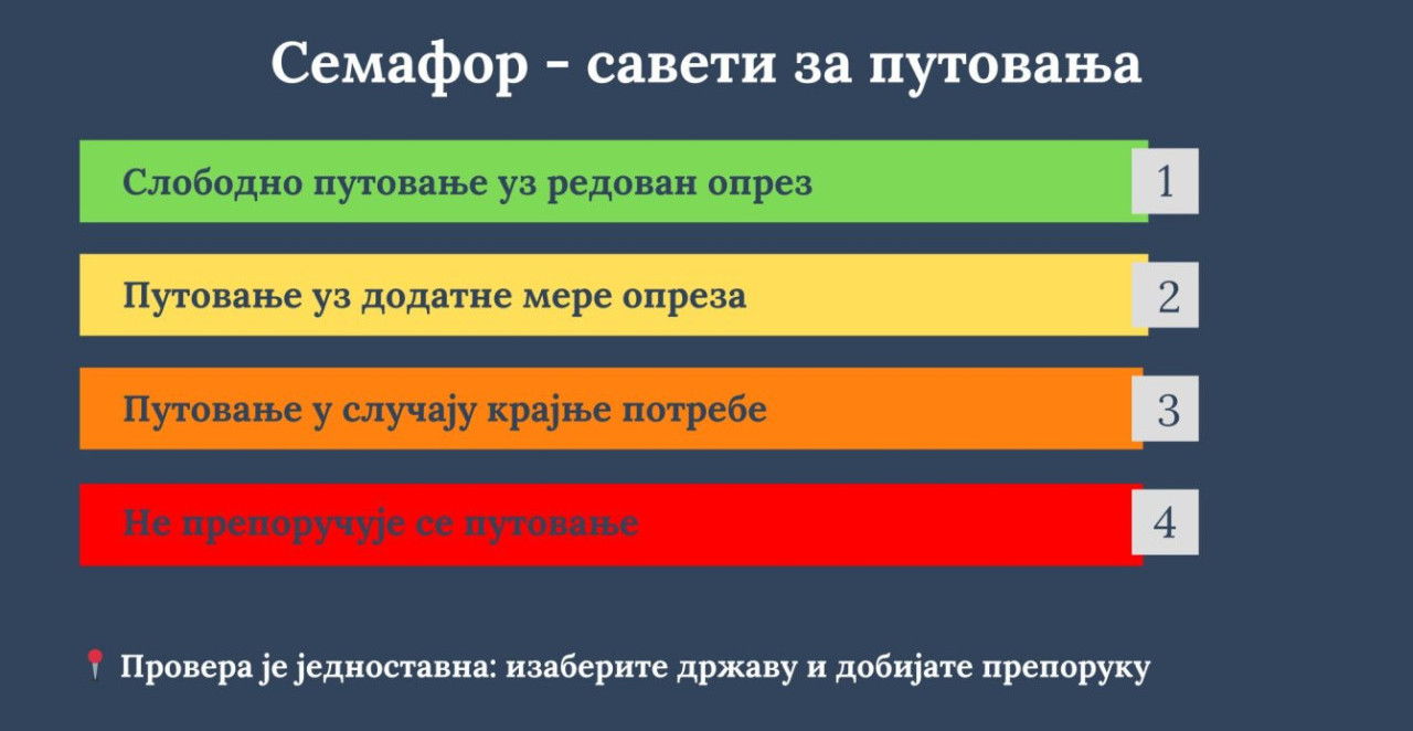 Građani pre putovanja na taj način mogu da se informišu o bezbednosnoj situaciji u zemlji u koju planiraju da putuju.