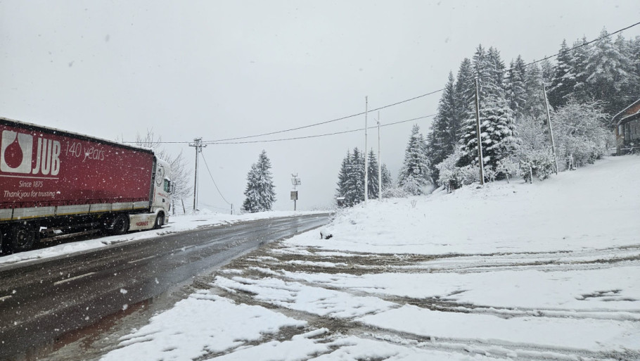 Vlažan sneg zadržava se i na kolovozima, što dodatno otežava saobraćaj u ovim planinskim krajevima.