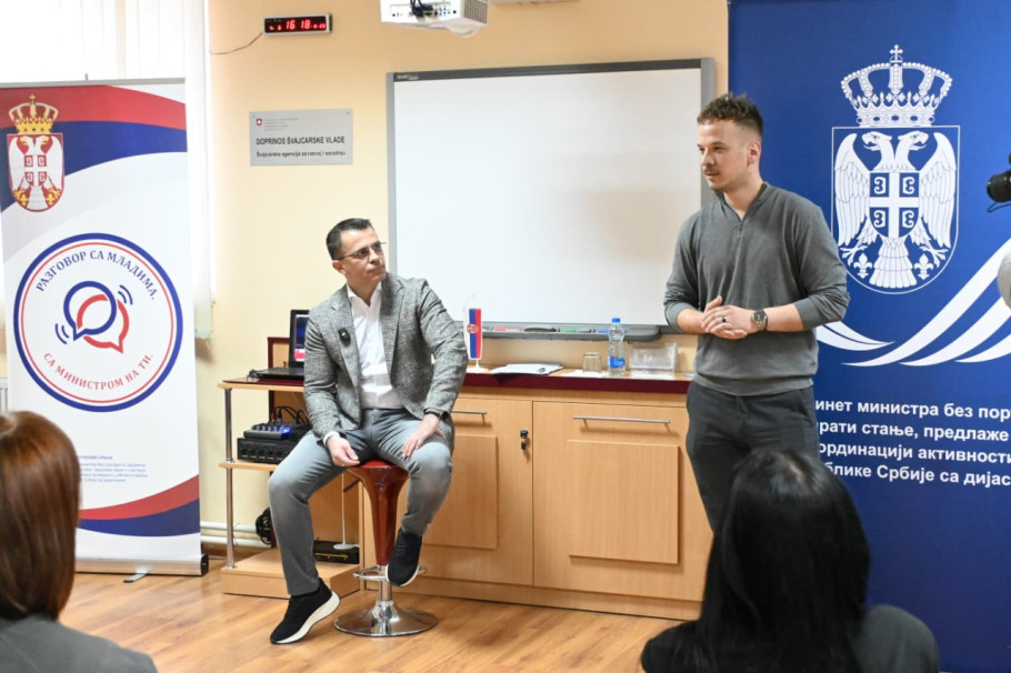 Ministar bez portfelja zadužen da prati stanje, predlaže mere i učestvuje u koordinaciji aktivnosti u oblasti odnosa Srbije sa dijasporom Đorđe Milićević, u okviru projekta "Sa ministrom na Ti", razgovarao je sa mladim ljudima u Regionalnom centru za profesionalni razvoj zaposlenih u obrazovanju u Smederevu, a tom prilikom je poručio da društvu nedostaje dijalog i direktan razgovor.