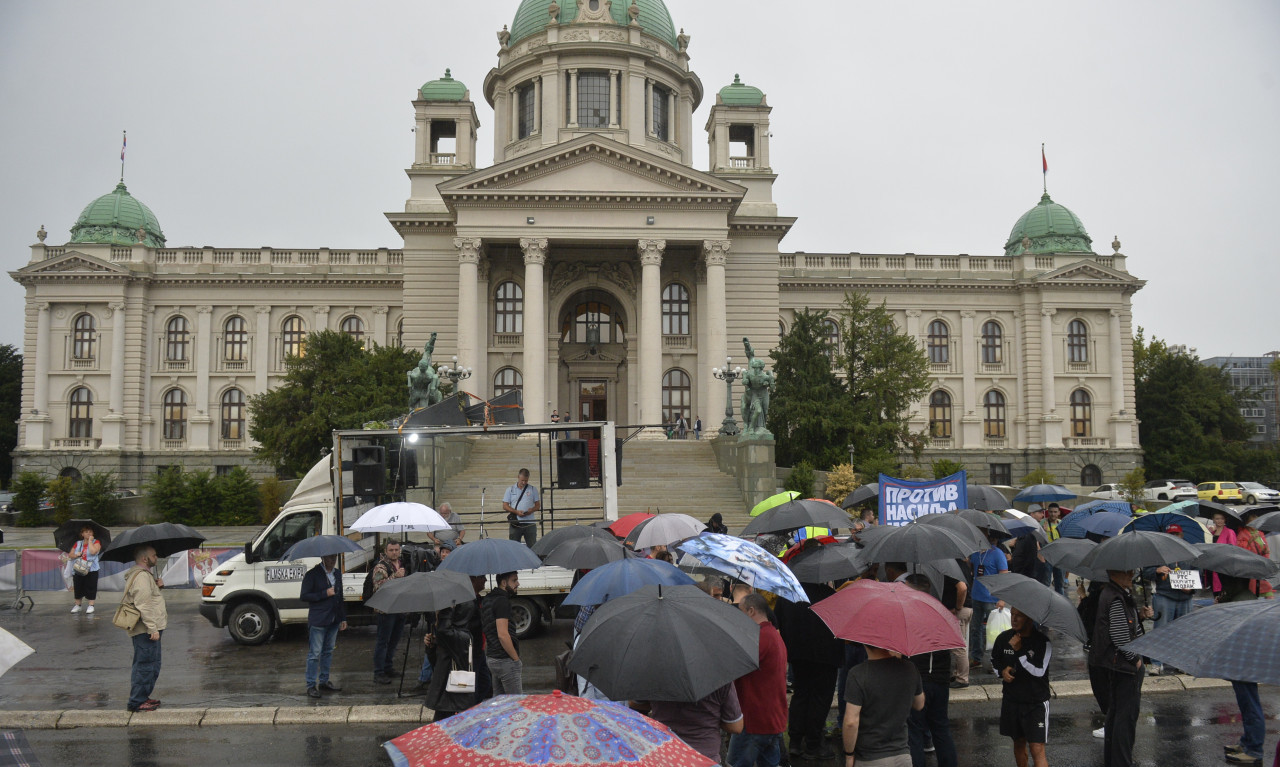 Protest organizuje nekoliko opozicionih stranaka, a ispred zgrade parlamenta došli su predsednik Ekološkog ustanka Aleksandar Jovanović Ćuta, šef poslaničke grupe Narodne stranke Miroslav Aleksić, predsednik Demokratske stranke Zoran Lutovac, poslanica Zeleno levog kluba Biljana Đorđević, poslanik Narodne stranke Vladeta Janković.