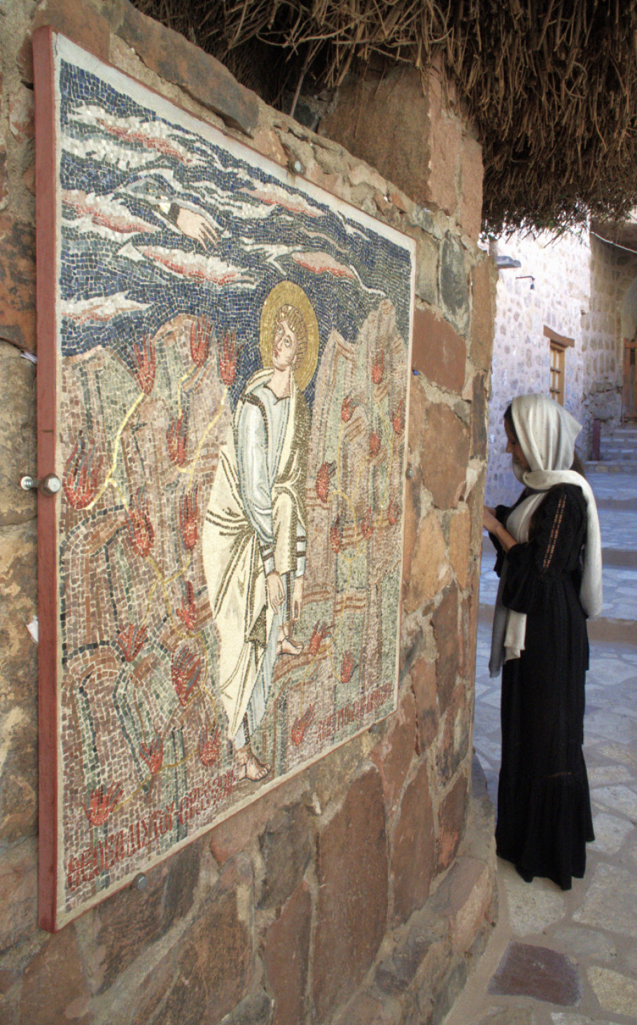Vučić je posetu započela paljenjem sveća u manastirskoj crkvi i ostavljanjem poruke sa željama ispod grma, za koji se veruje da je biblijski grm koji gori, preko koga se Bog obratio Mojsiju.