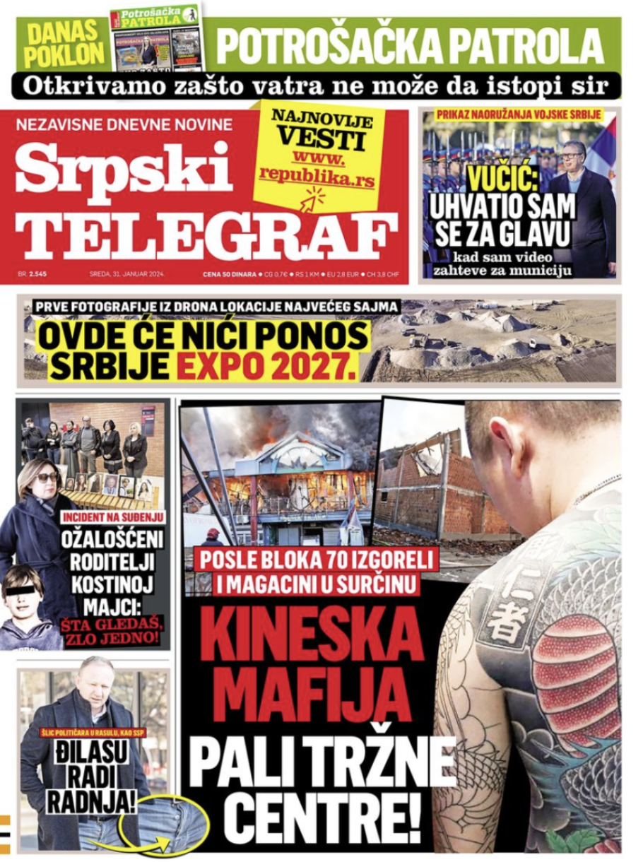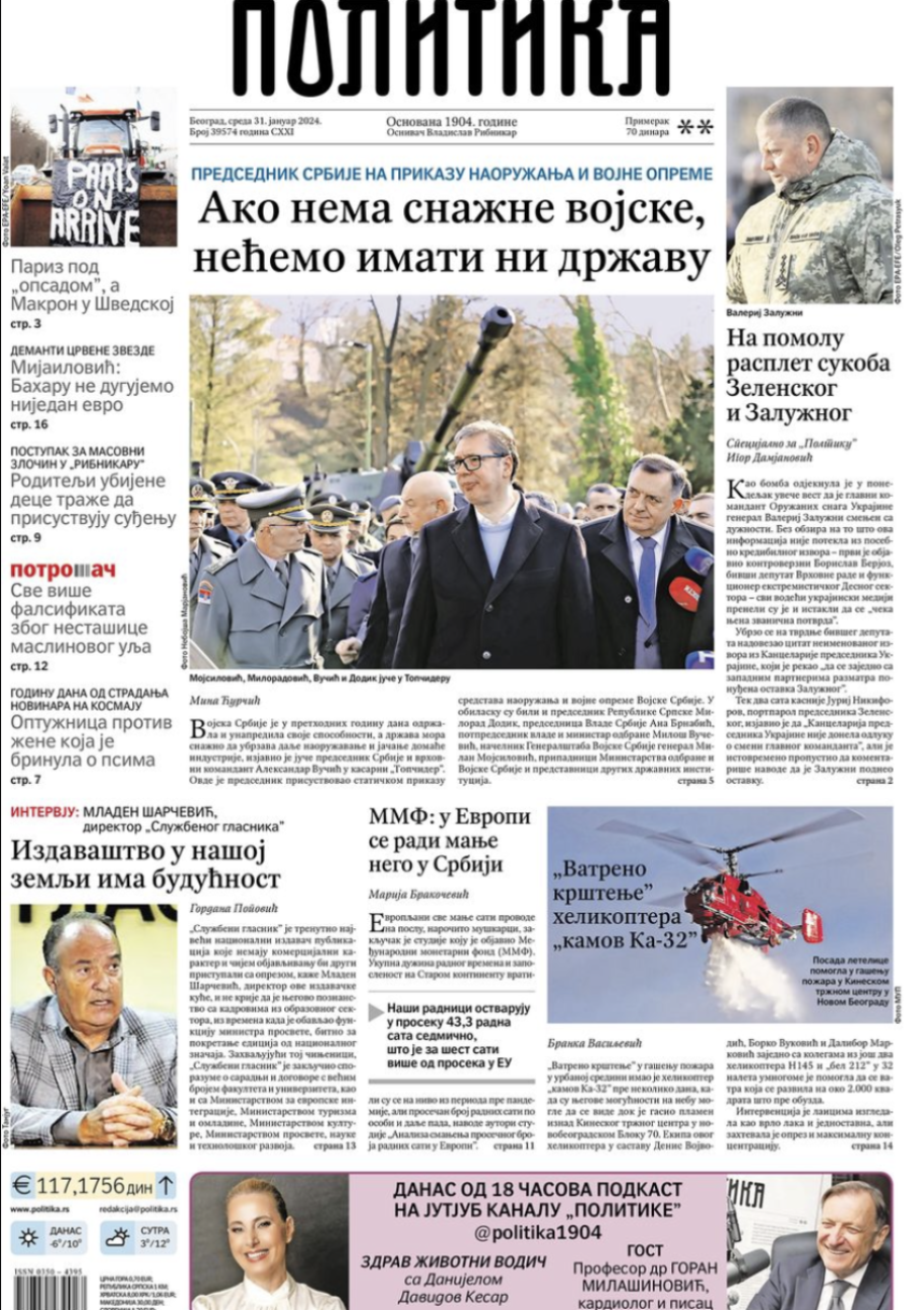 Pregled naslovnih strana dnevnih i nedeljnih novinskih izdanja