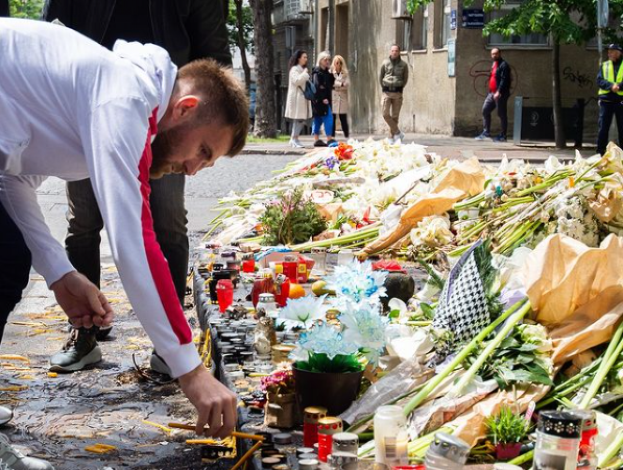 Tragedija u kojoj je život izgubilo devet mališana i čuvar škole potresla je čitavu planetu, a Aleksandar Katai je ispred FK Crvena zvezda položio venac i upalio sveće.