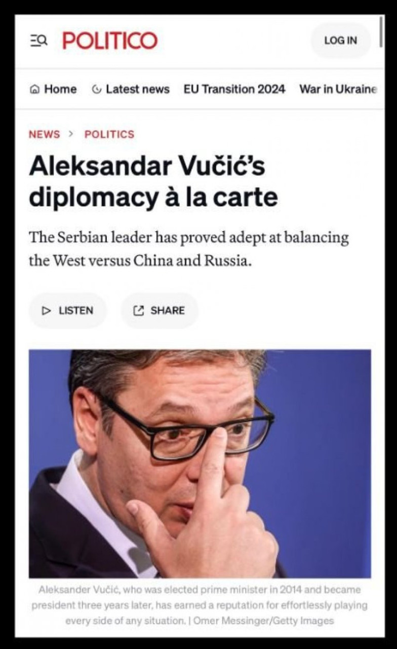Čuveni briselski portal "Politiko", koji u svetu važni za veoma uticajni i ugledni medij, objavio je članak o predsedniku Srbije Aleksandru Vučiću.