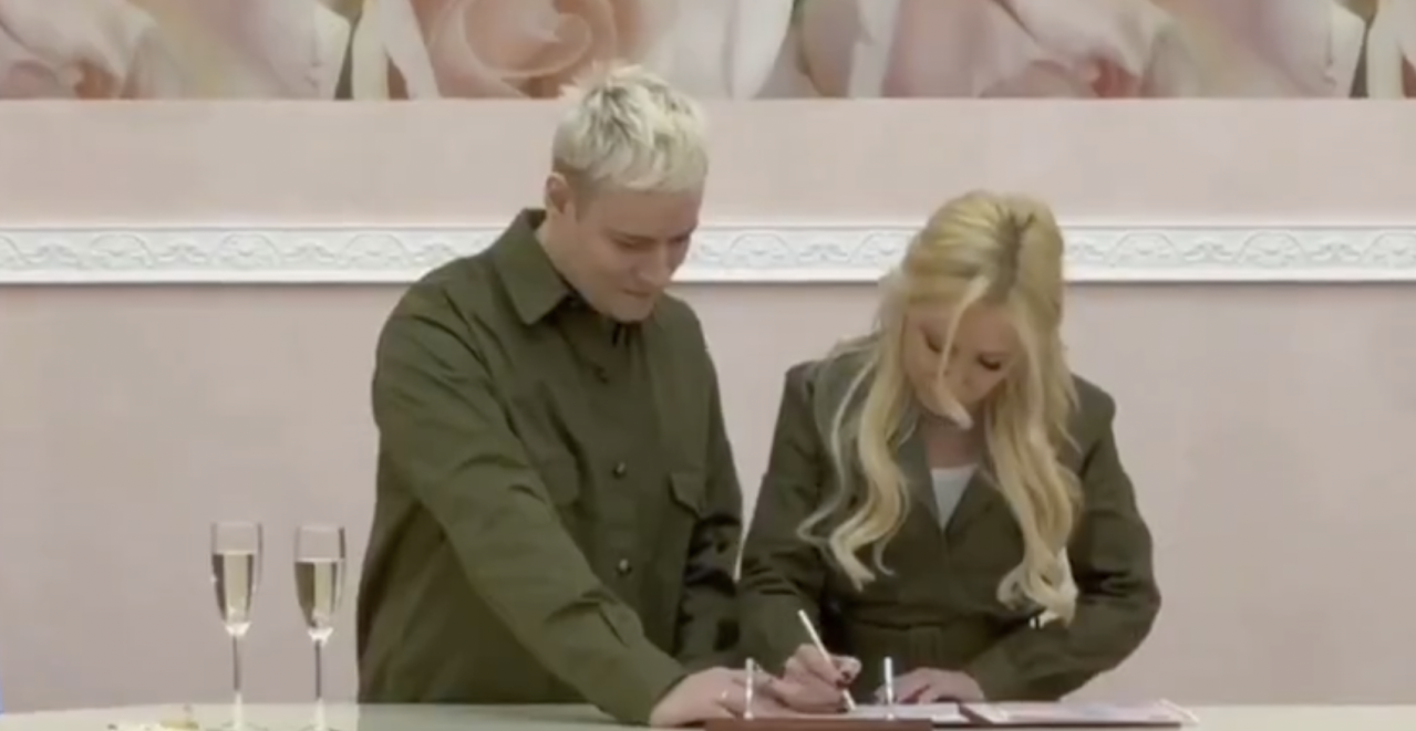 U Donjecku smo sa Jaroslavom posetili matični ured i potpisali“, napisala je Mizulina uz video. Isti snimak objavio je i Shaman na svom kanalu uz identičan opis. Par se odlučio za neobične vojne kaki kombinacije nalik na tunike, a na snimku se vidi i trenutak kada im čelnik samoproglašene Narodne Republike Donjeck Denis Pušilin čestita na venčanju i uručuje buket belih ruža.