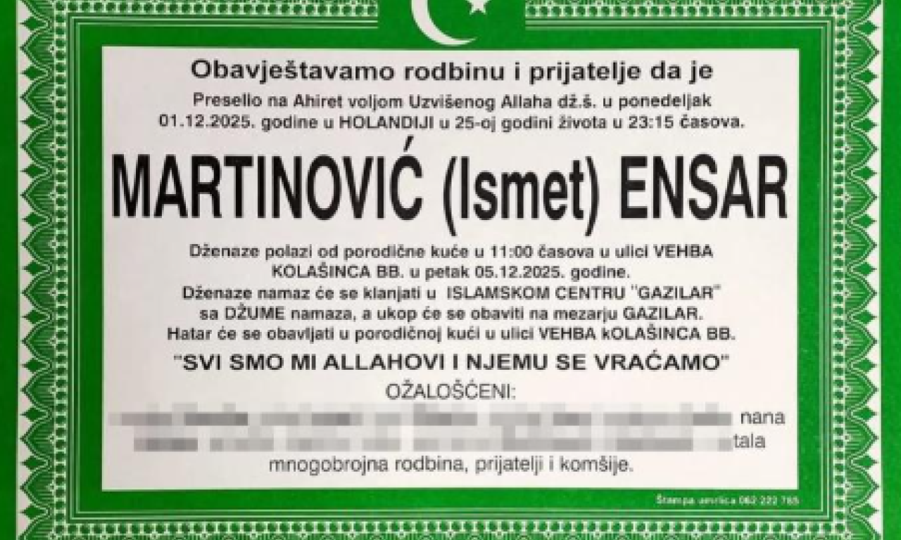 Inače, nakon nesreće svi koji su poznavali Ensara su neizmerno tužni i van sebe od bola i tuge. Za njega imaju samo reči hvale, a navode da je bio tih, miran i vredan mladić koji potiče iz ugledne novopazarske porodice Martinović.