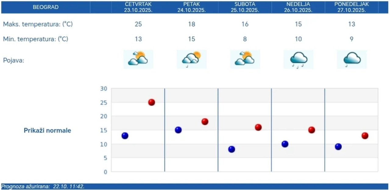 Vremenska prognoza za Srbiju i Beograd za četvrtak