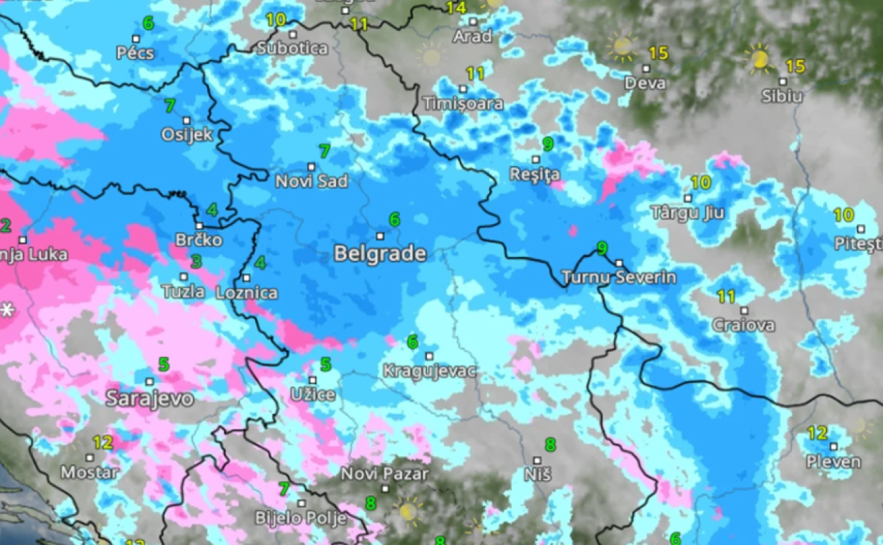 Sudeći po radarskim snimcima, građane Srbije u petak očekuje prilično sumorno jutro. Padavine neće popuštati tokom celog prepodneva, zadržavajući se nad većim delom zemlje.