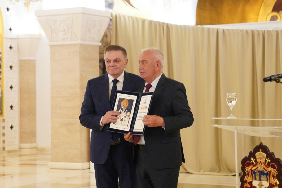 Akademiku i direktoru Instituta za kardiovaskularne bolesti "Dedinje" Milovanu Bojiću danas je u kripti Hrama Svetog Save svečano uručena Svetosavska povelja Srpskog prosvetnog i kulturnog društva "Prosvjeta" Beograd.